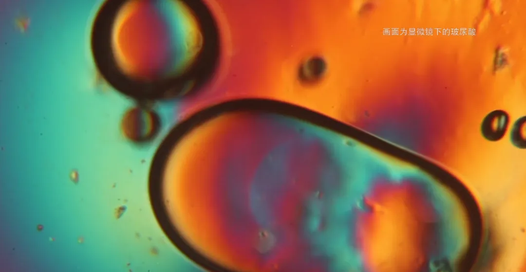 ▲显微镜下的玻尿酸。图 / 《华熙生物20周年纪录片》截图